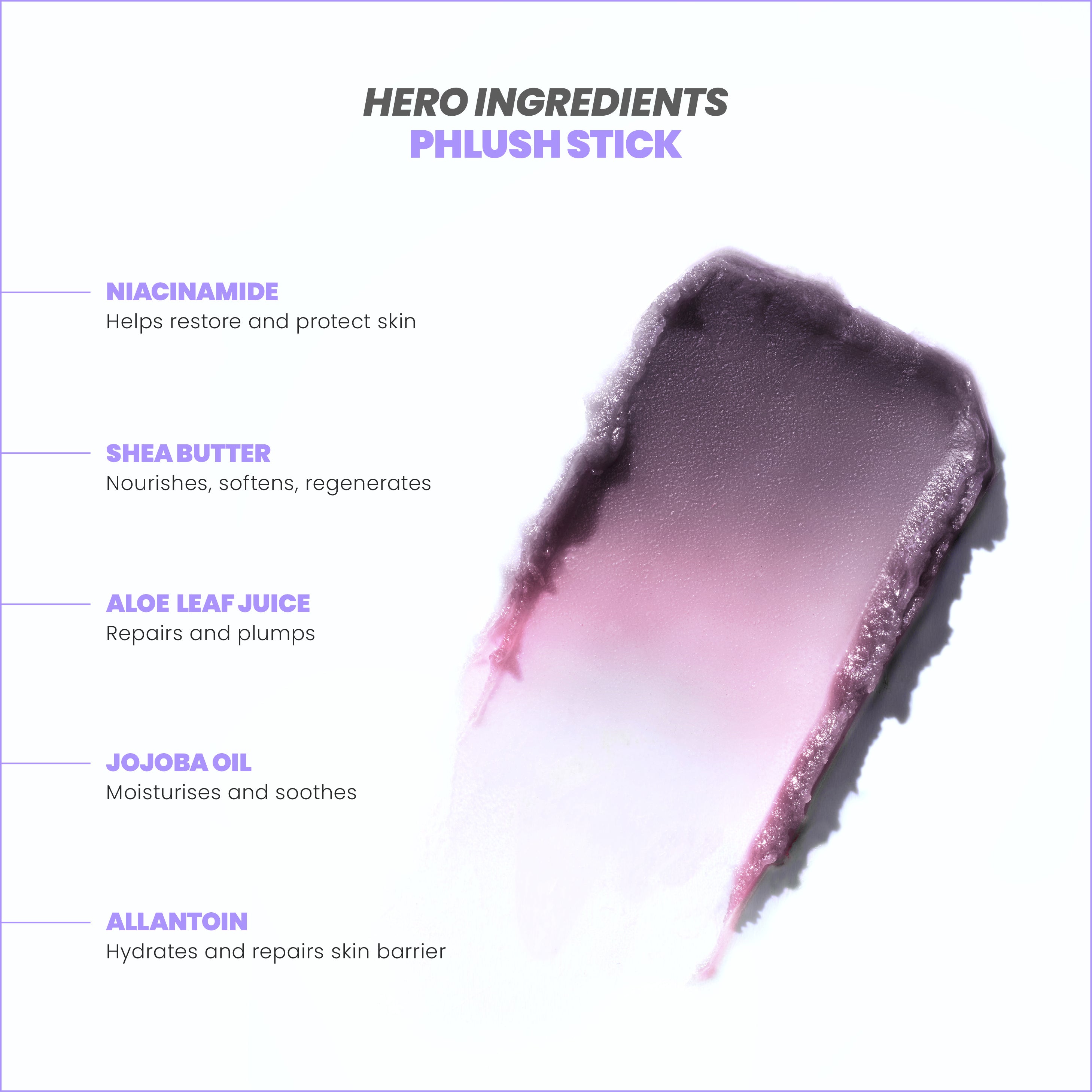 Our PHLUSH Stick is made from a specific blend of natural waxes and oils, creating a cool, nourishing, smooth, easy- glide application. The Stick formula is infused with encapsulated ‘skin reacting’ pigments to provide a natural flush to where applied as well as a complex of skincare ingredients to treat the skin.