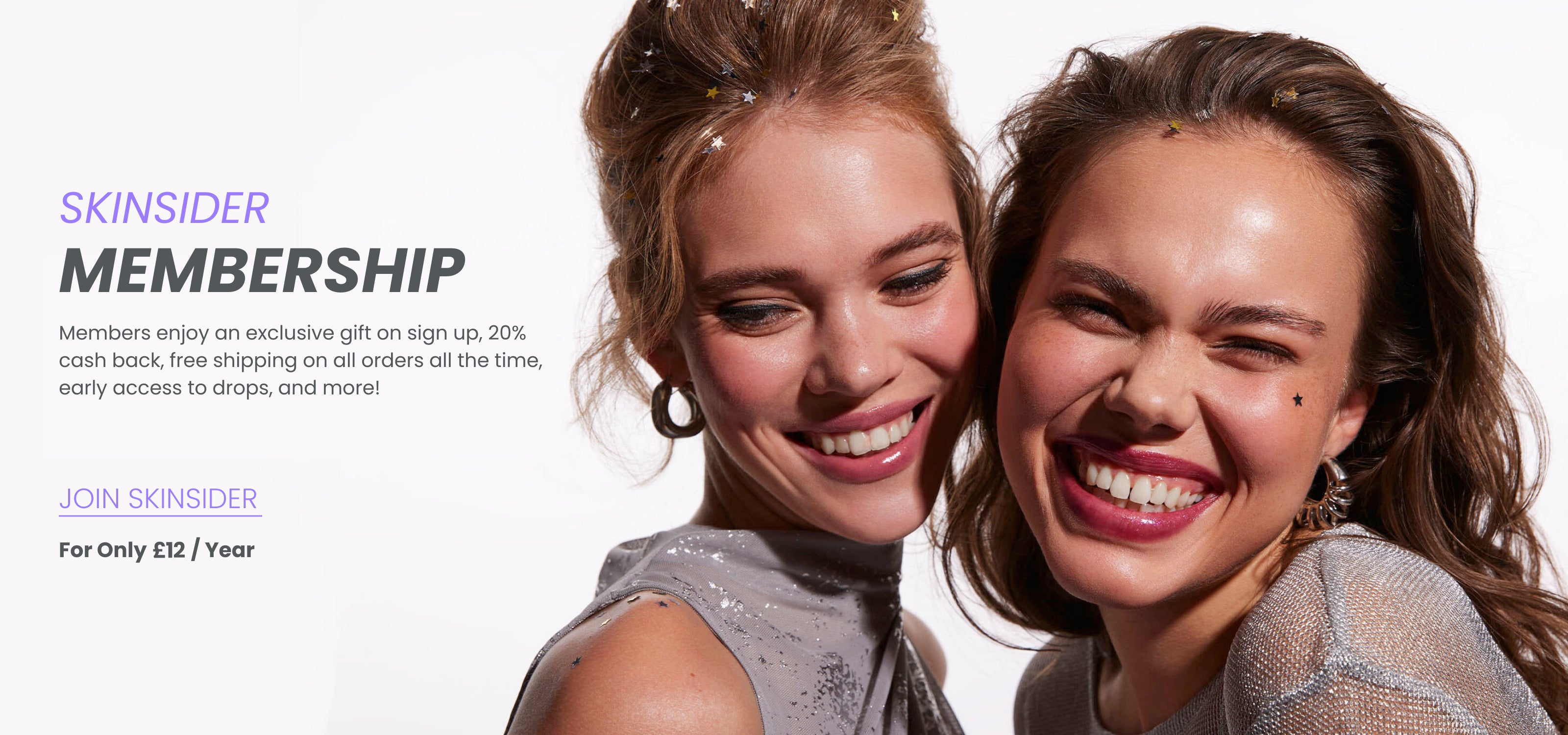 Skinsider members enjoy an exclusive gift on sign up, 20% cash back, free shipping on all orders all the time, early access to drops, and more!