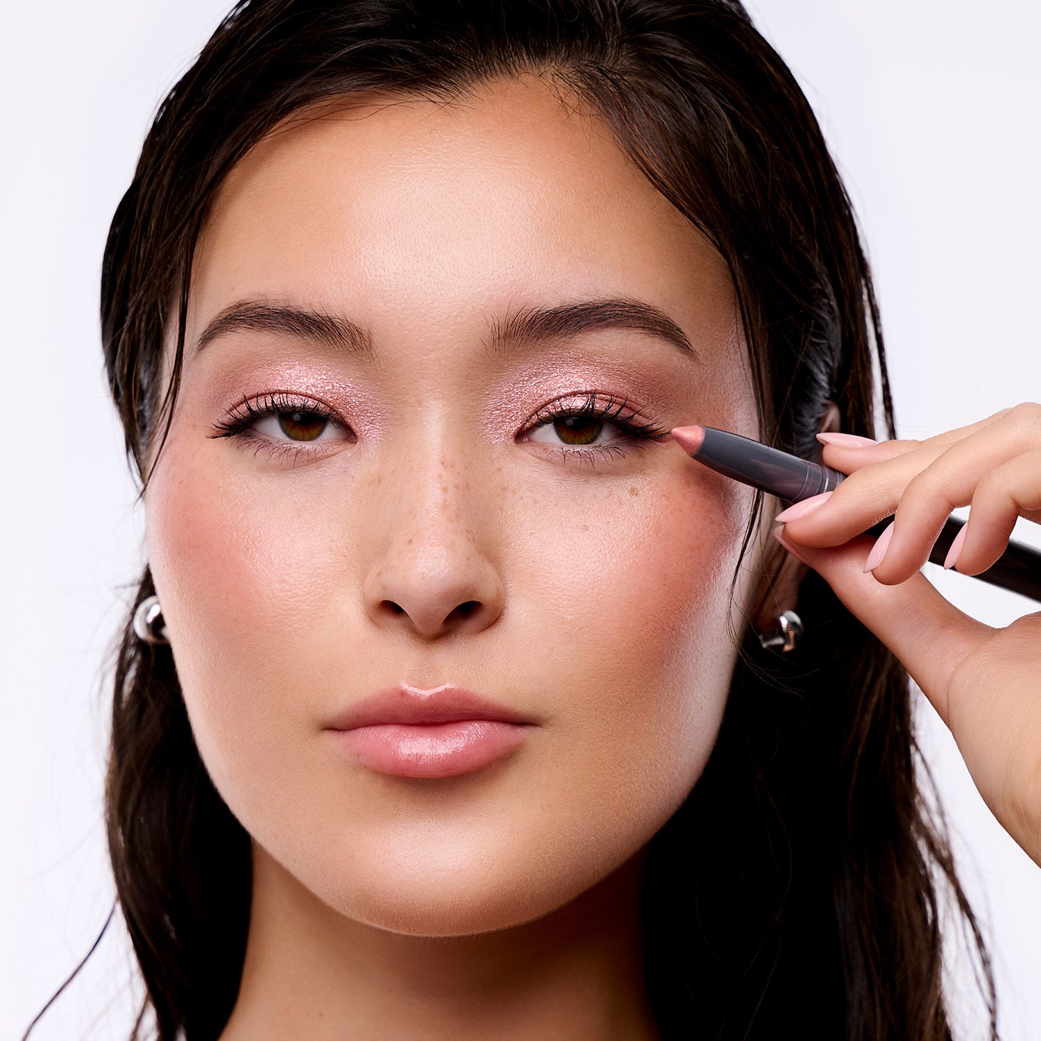 Swipe Eyeshadow Stick across the eyelid and blend with fingers or brush for longwear, crease-free color. Color sets after 30 seconds of application.