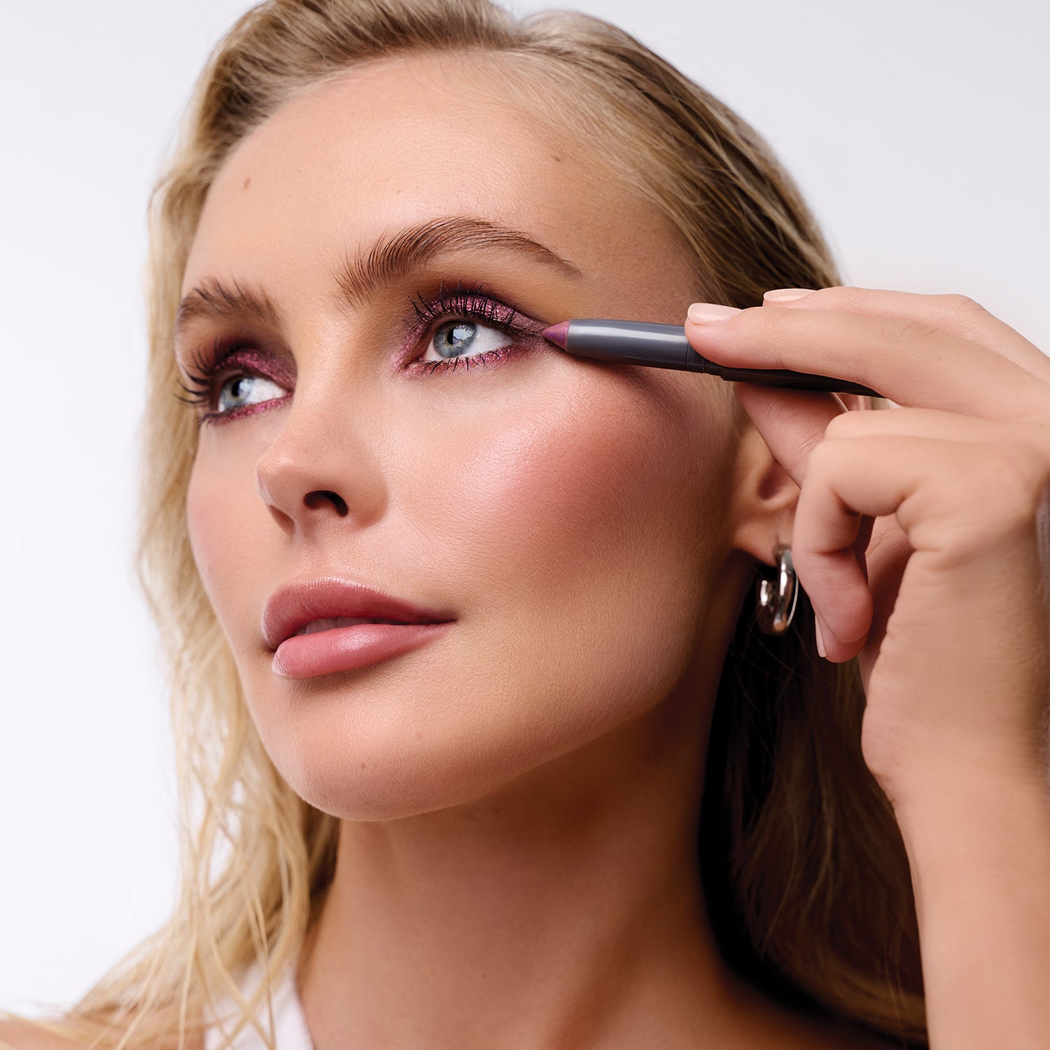 Swipe Eyeshadow Stick across the eyelid and blend with fingers or brush for longwear, crease-free color. Color sets after 30 seconds of application.
