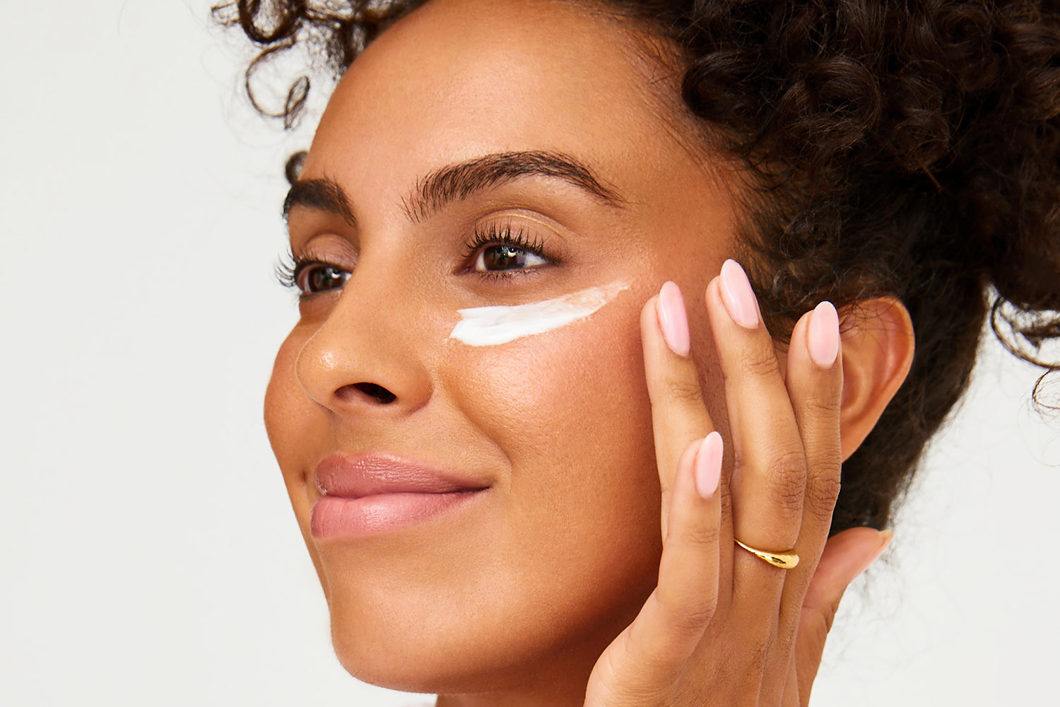 Use your ring finger to gently tap a tiny bit of cream along your under-eye area and at the inner and outer corners.