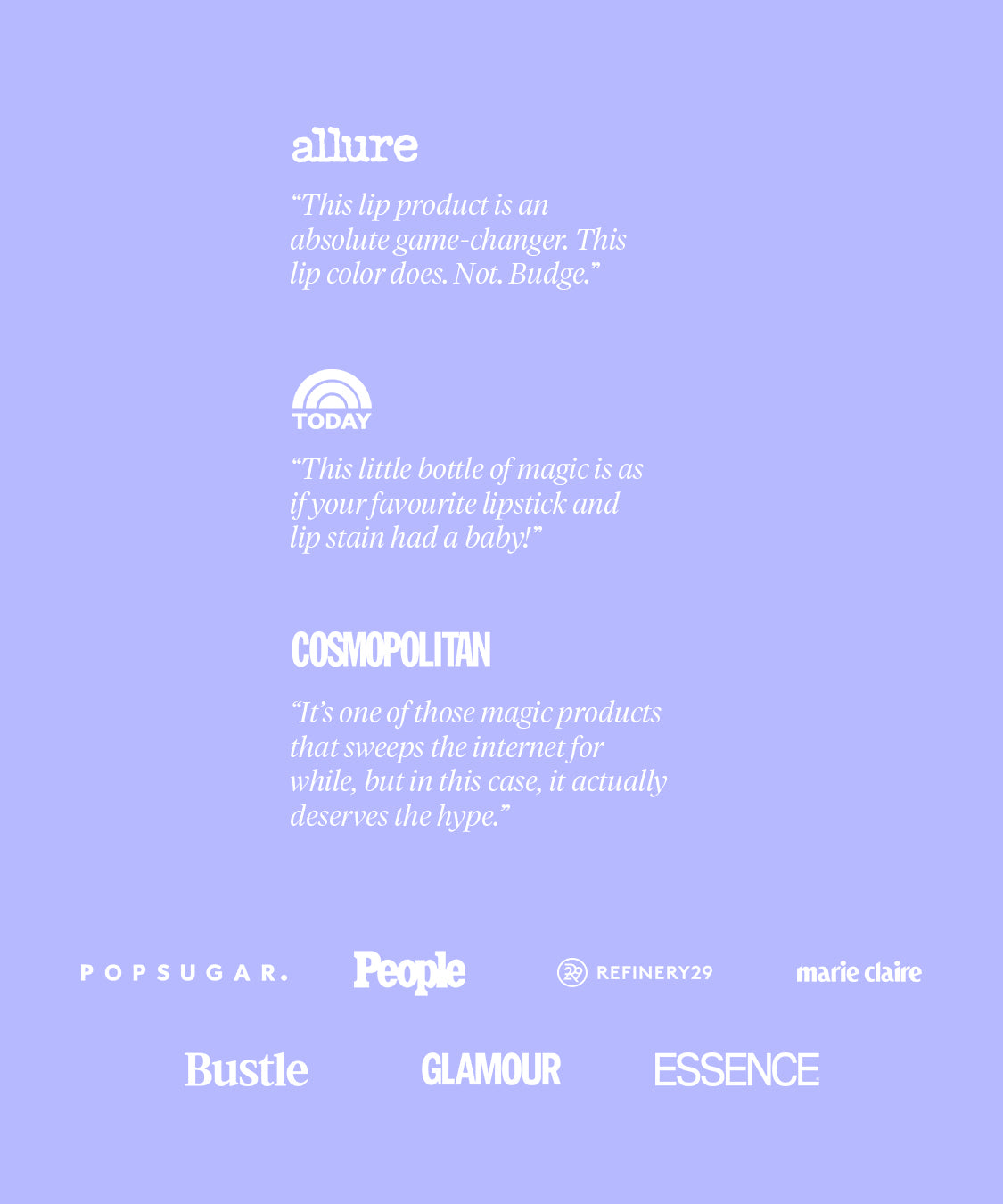 Revolutionary all-day lip color. Transfer-proof. Waterproof. Life-proof.