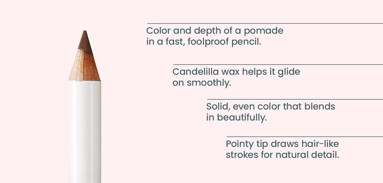 Perfect brow pencil with pomade texture that lets you draw with precision, fill in the gaps and style to perfection for a natural look.