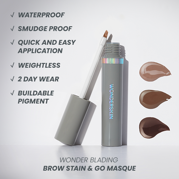 Wonder Blading Brow Stain and Go Masque should be applied to clean, fresh brows without any product (moisturizers and serums including). Apply a thick even layer of brow masque onto the entire surface of the brow including sparse areas. Allow it to set for at least 60 seconds before removing it.